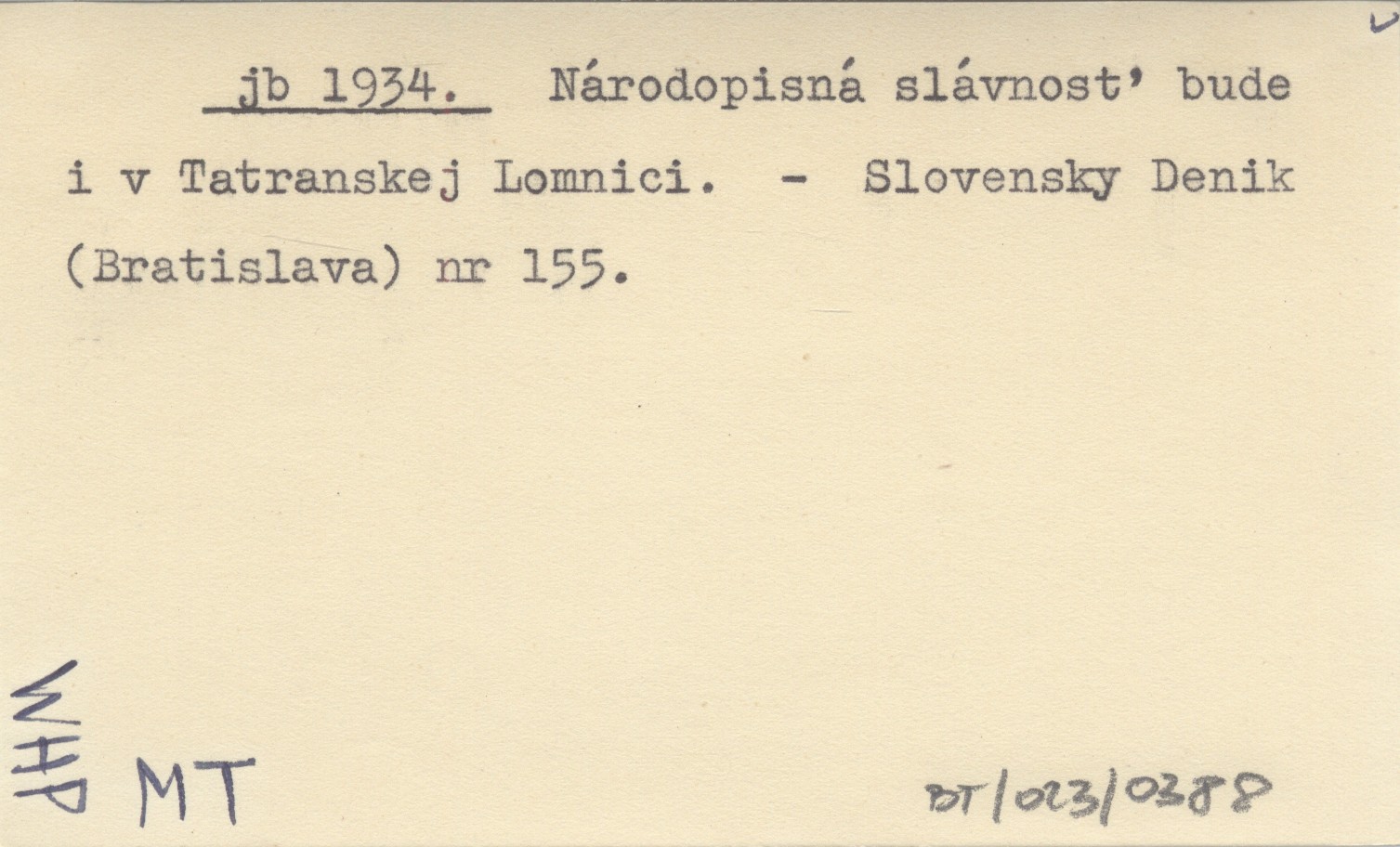 jb 1934 Národopisná slávnosť bude i v Tatranskej Lomnici.