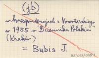 (jb) BUBIS J. W korespondencjach z Nowotarskiego w 1955 w "Dzienniku Polskim" (Kraków).