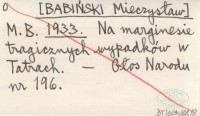 M. B. [BABIŃSKI Mieczysław] 1933 Na marginesie tragicznych wypadków w Tatrach.