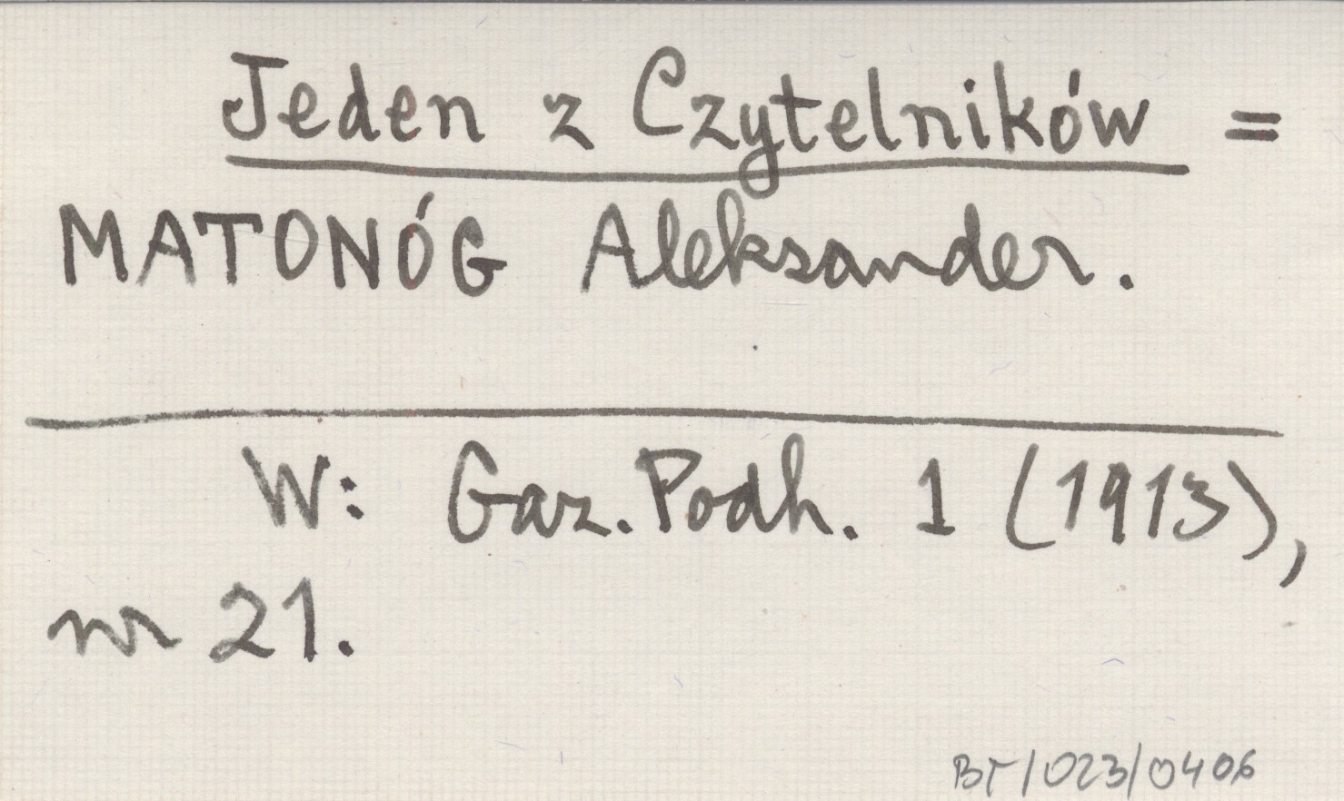 Jeden z Czytelników MATONÓG Aleksander Gazeta Podhalańska (1913), nr 21.