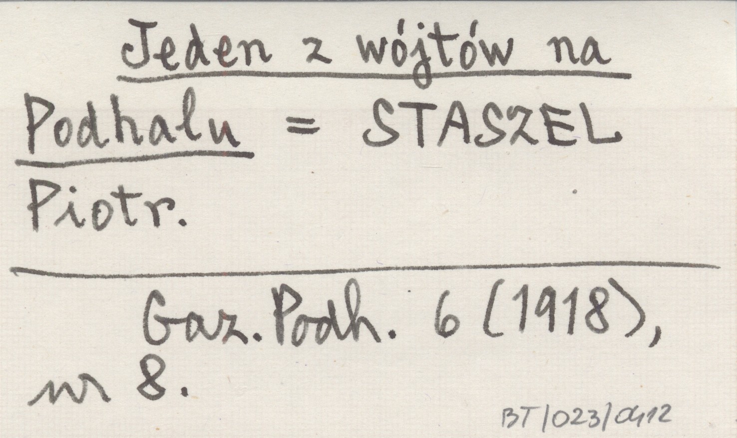 Jeden z wójtów na Podhalu STASZEL Piotr Gazeta Podhalańska 6 (1918), nr 8.