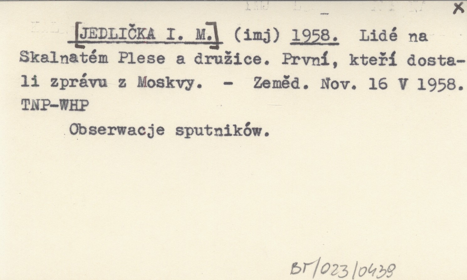 Zemědělské Noviny, 16 V 1958. Obserwacje sputników.