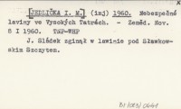(imj) [JEDLIČKA I. M.] 1960 Nebezpečné laviny ve Vysokých Tatrách.