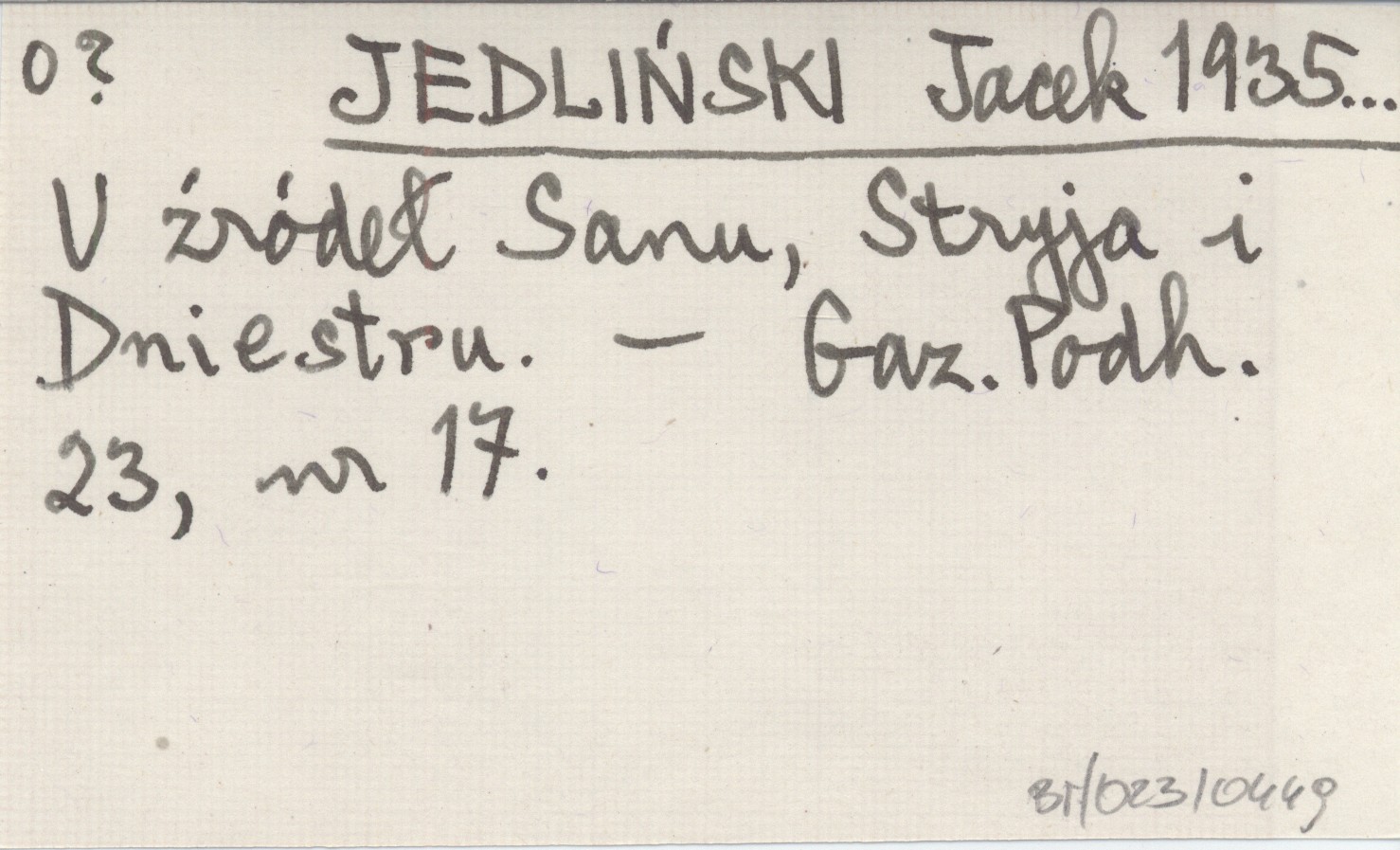 JEDLIŃSKI Jacek 1935... U źródeł Sanu, Stryja i Dniestru.