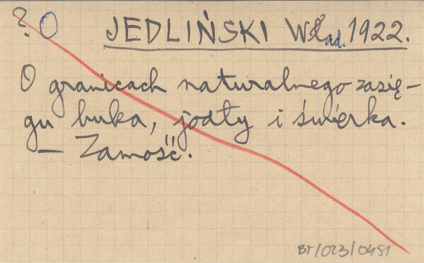 JEDLIŃSKI Wład. 1922 O granicach naturalnego zasięgu buka, jodły i świerka.