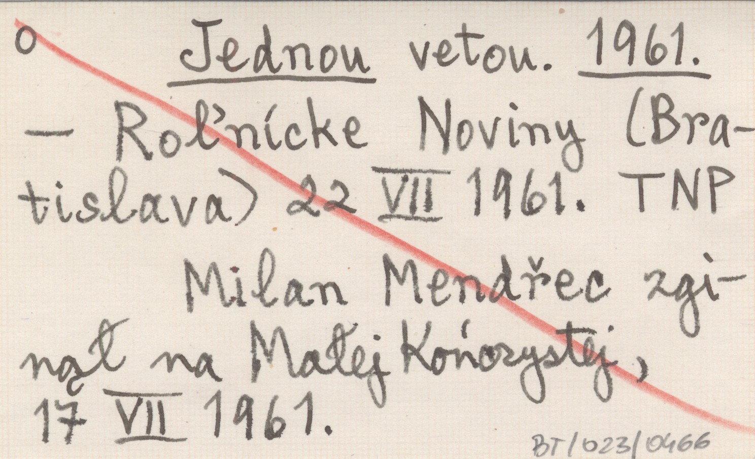 Roľnícke Noviny (Bratislava) , 22 VII 1961. Milan Mendřec zginął na Małej Kończystej, 17 VII 1961.