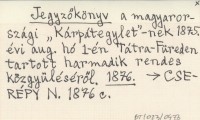 Jegyzőkönyv a magyarországi "Kárpátegylet"-nek 1875. évi aug. hó 1-én Tátra-Füreden tartott harmadik rendes közgyüléséről. 1876