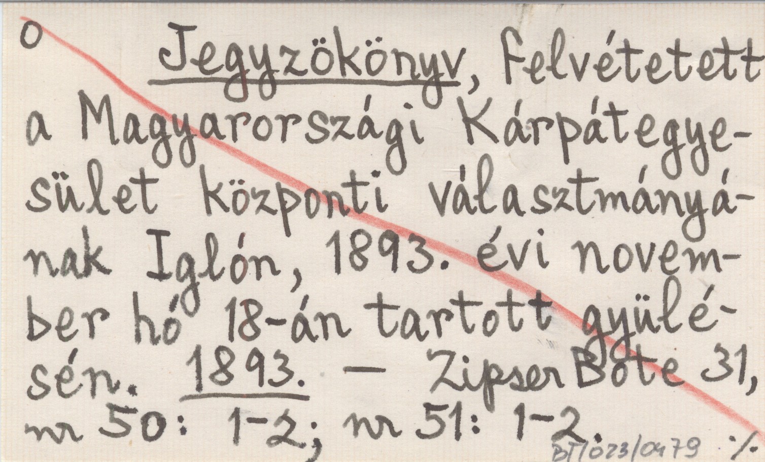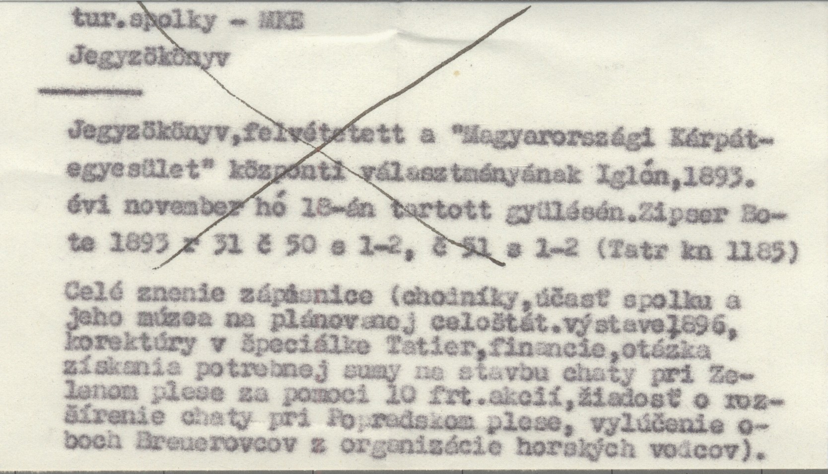 Jegyzökönyv, felvétetett a Magyarországi Kárpátegyesület központi választmányának Iglón, 1893. évi november hó 18-án tartott gyülésén. 1893