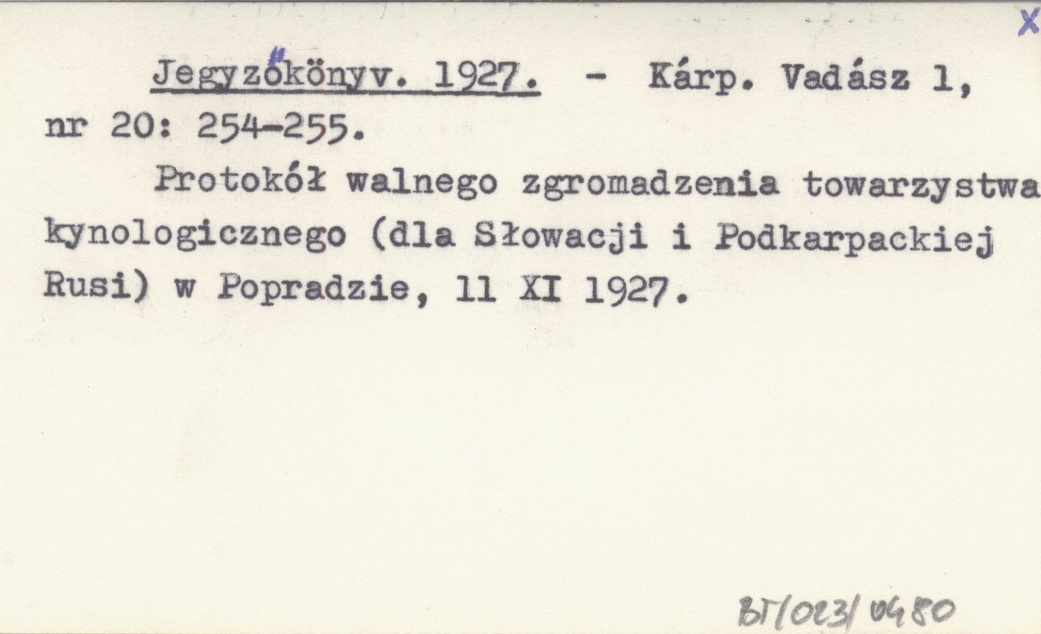Kárp. Vadász, 1, nr 20: 254-255. Protokół walnego zgromadzenia towarzystwa kynologicznego (dla Słowacji i Podkarpackiej Rusi) w Popradzie, 11 XI 1927.