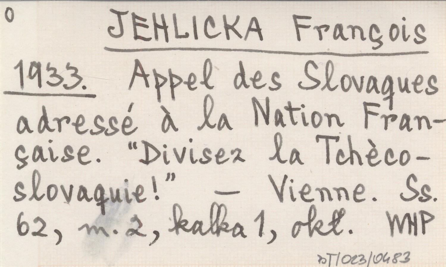 JEHLICKA Francois 1933 Appel des Slovaques adressé a la Nation Francaise. "Divisez la Tchecolovaquie!"