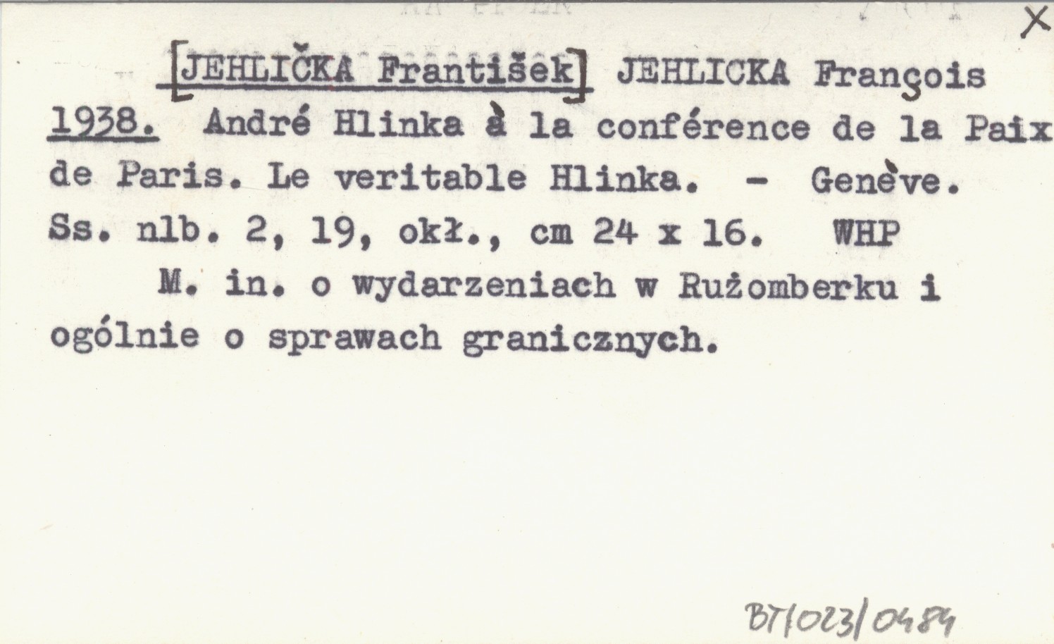 Geneve , [2], 19 s., okł., 24x16 cm. M. in. o wydarzeniach w Rużomberku i ogólnie o sprawach granicznych.