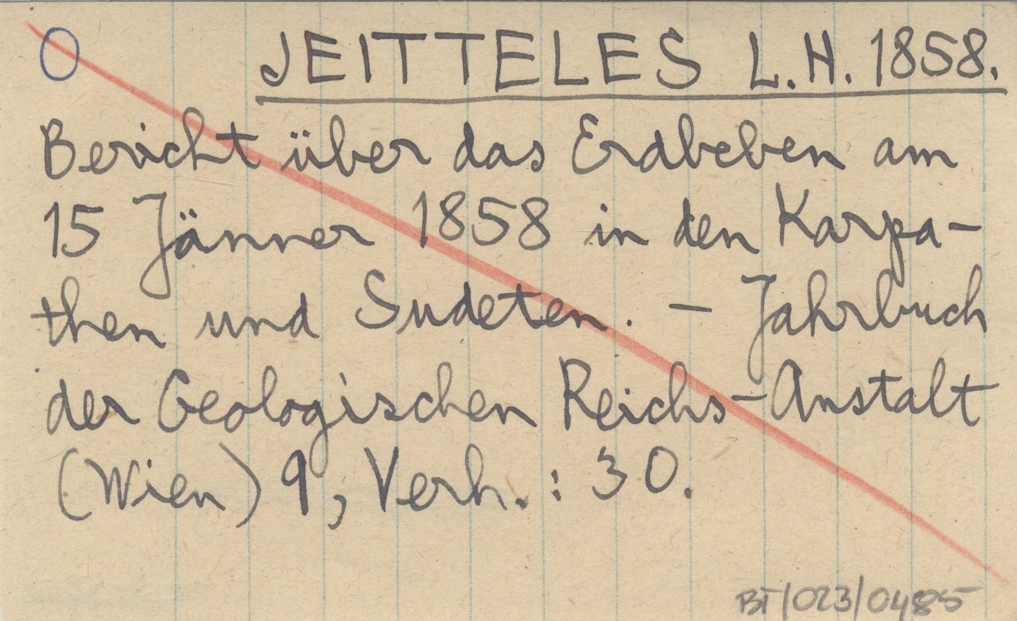 JEITTELES L. H. 1858 Bericht über das Erdbeben am 15 Jänner 1858 in den Karpathen und Sudeten.