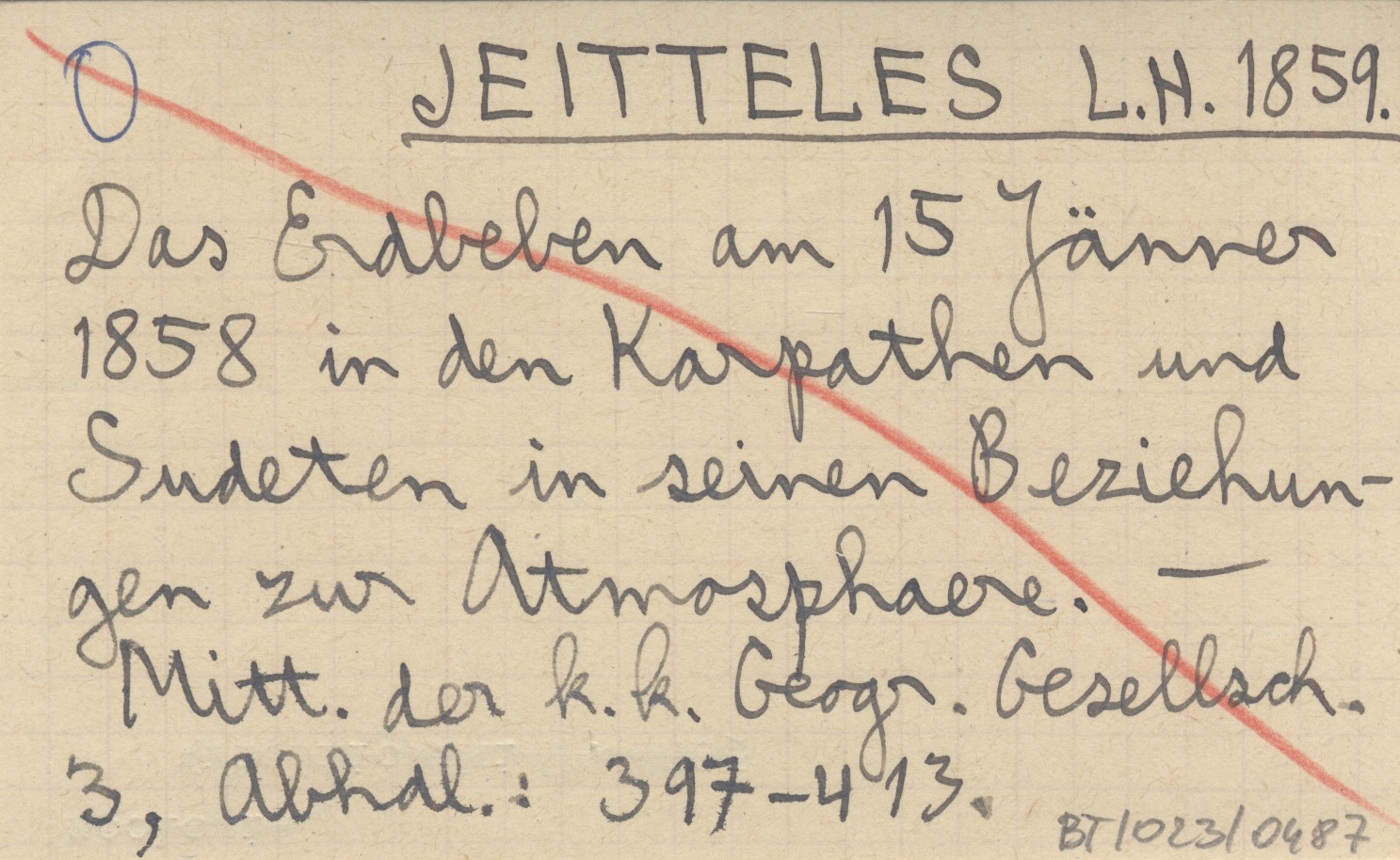 JEITTELES L. H. 1859 Das Erdbeben am 15 Jänner 1858 in den Karpathen und Sudeten in seinen Beziehungen zur Atmosphaere.