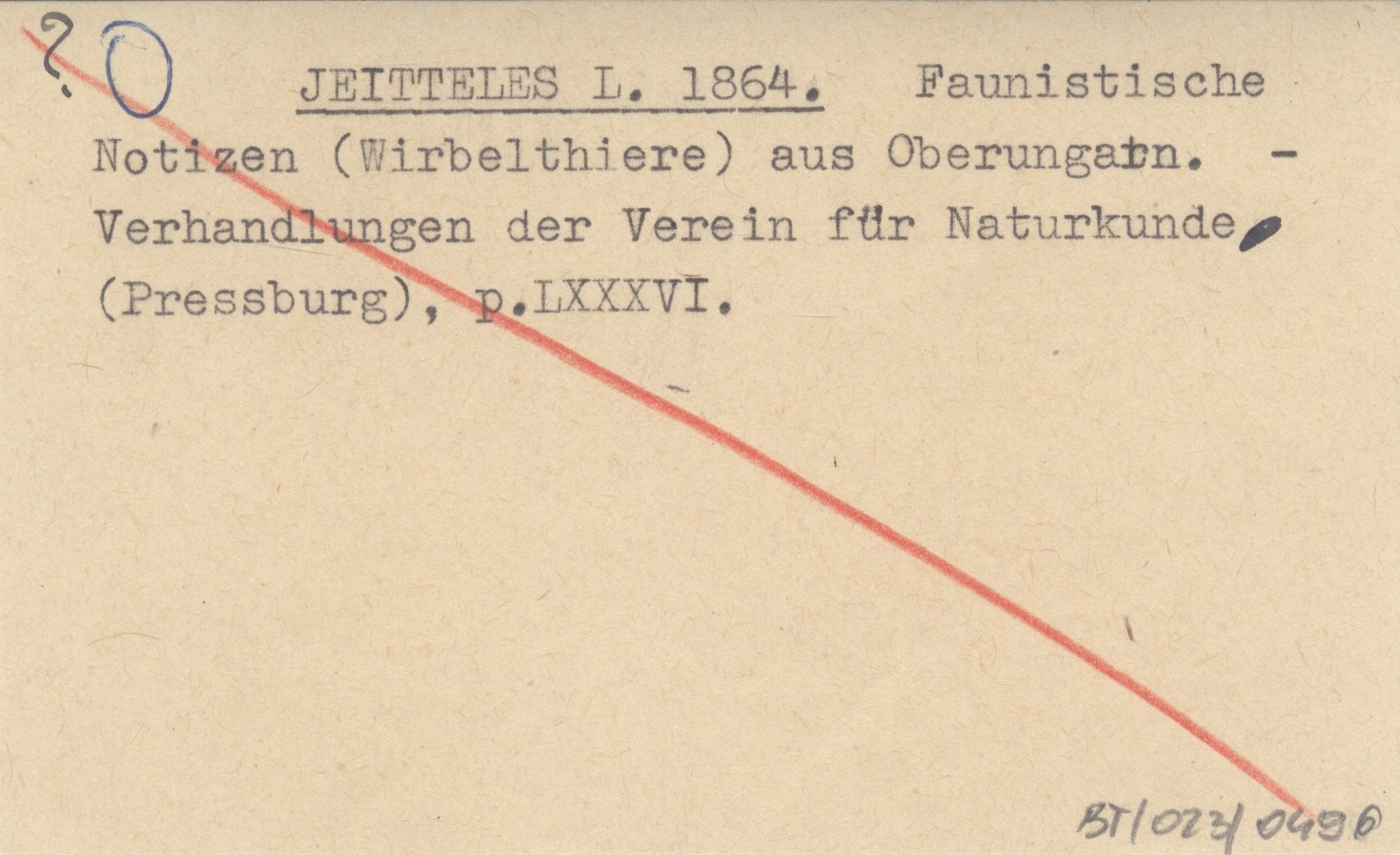 JEITTELES L. 1864 Faunistische Notizen (Wirbelthiere) aus Oberungarn.