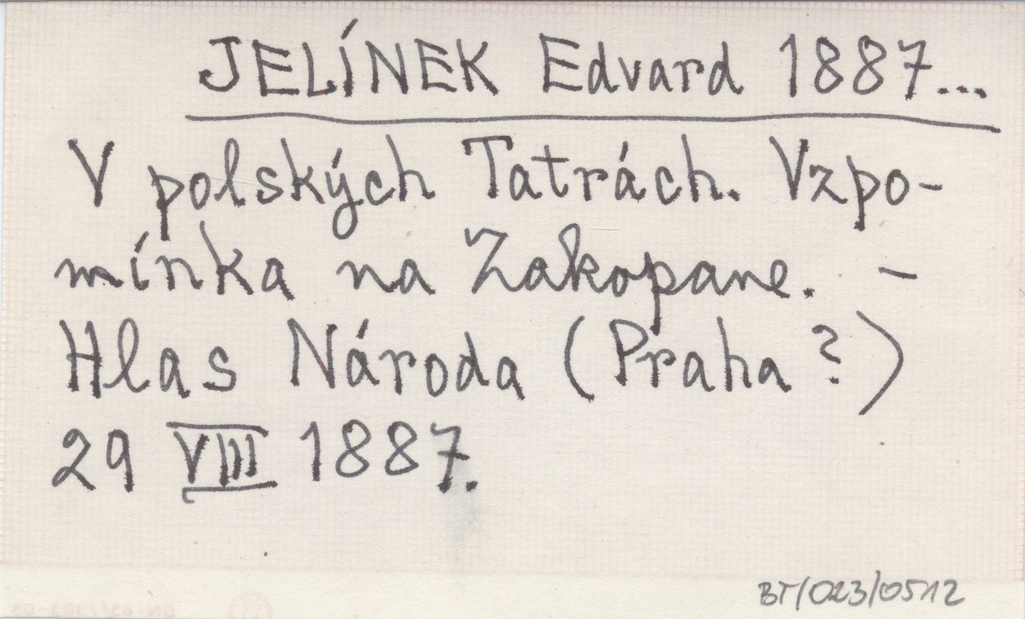 Hlas Národa (Praha?) , 29 VIII 1887.