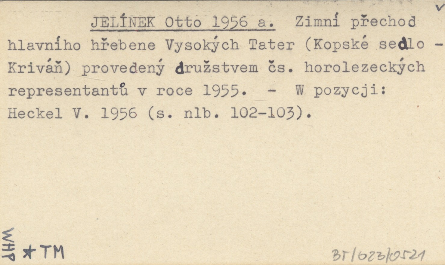 JELÍNEK Otto 1956 a Zimní přechod hlavního hřebene Vysokých Tater (Kopské sedlo - Kriváň) provedený druľstvem čs. horolezeckých representantů v roce 1955.