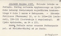 JELONEK Feliks 1937 Kolonie letnie na Podhalu. Podług referatu wygłoszonego na Zjeździe Lekarzy Powiatowych województwa krakowskiego w dniu 5 marca w Zakopanem.