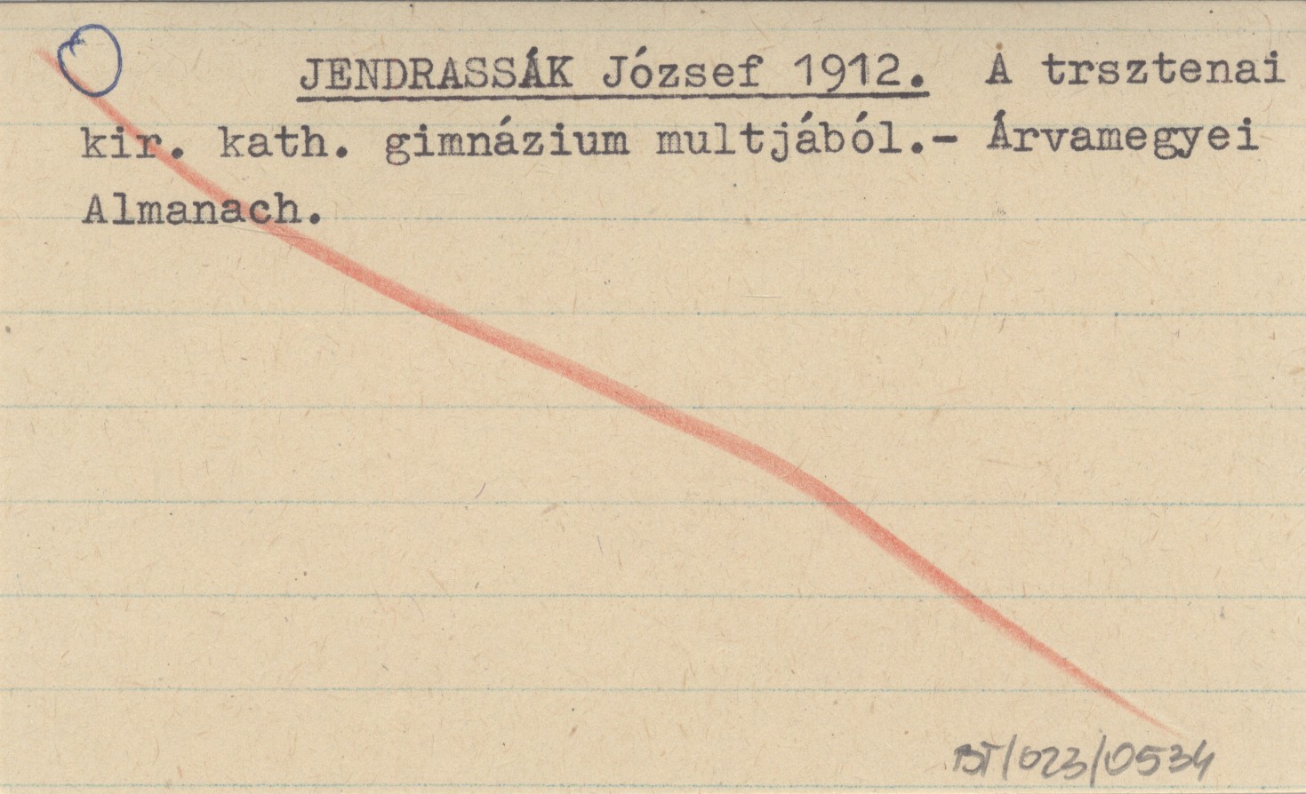 JENDRASSÁK József 1912 A trsztenai kir. kath. gimnázium multjából.