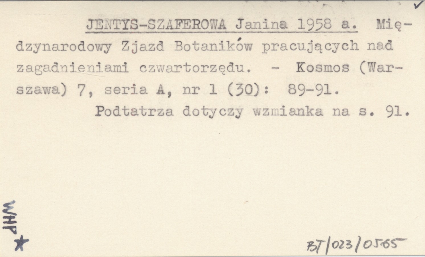 JENTYS-SZAFEROWA Janina 1958 a Międzynarodowy Zjazd Botaników pracujących nad zagadnieniami czwartorzędu.