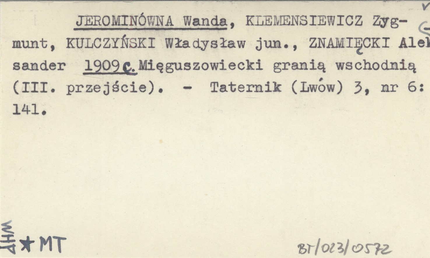 JEROMINÓWNA Wanda KLEMENSIEWICZ, Zygmunt. ; KULCZYŃSKI, Władysław jun. ; ZNAMIĘCKI, Aleksander. ; 1909 c Mięguszowiecki granią wschodnią (III. przejście).