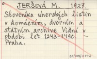 JERŠOVÁ M. 1927 Slovenika uherských listin v domácním, dvorním a státním archive Vidní v obdobi let 1243-1490.