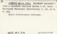JERŠOVÁ Mária 1964 Valašské obyvateľstvo a valašská textilná výroba v 17. stor.