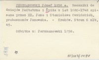 JERZMANOWSKI Józef 1858 a Roczniki do dziejów Podtatrza i Śpiża z lat 1680-1748 spisane przez XX. Jana i Stanisława Owsińskich, proboszczów Jazowska.