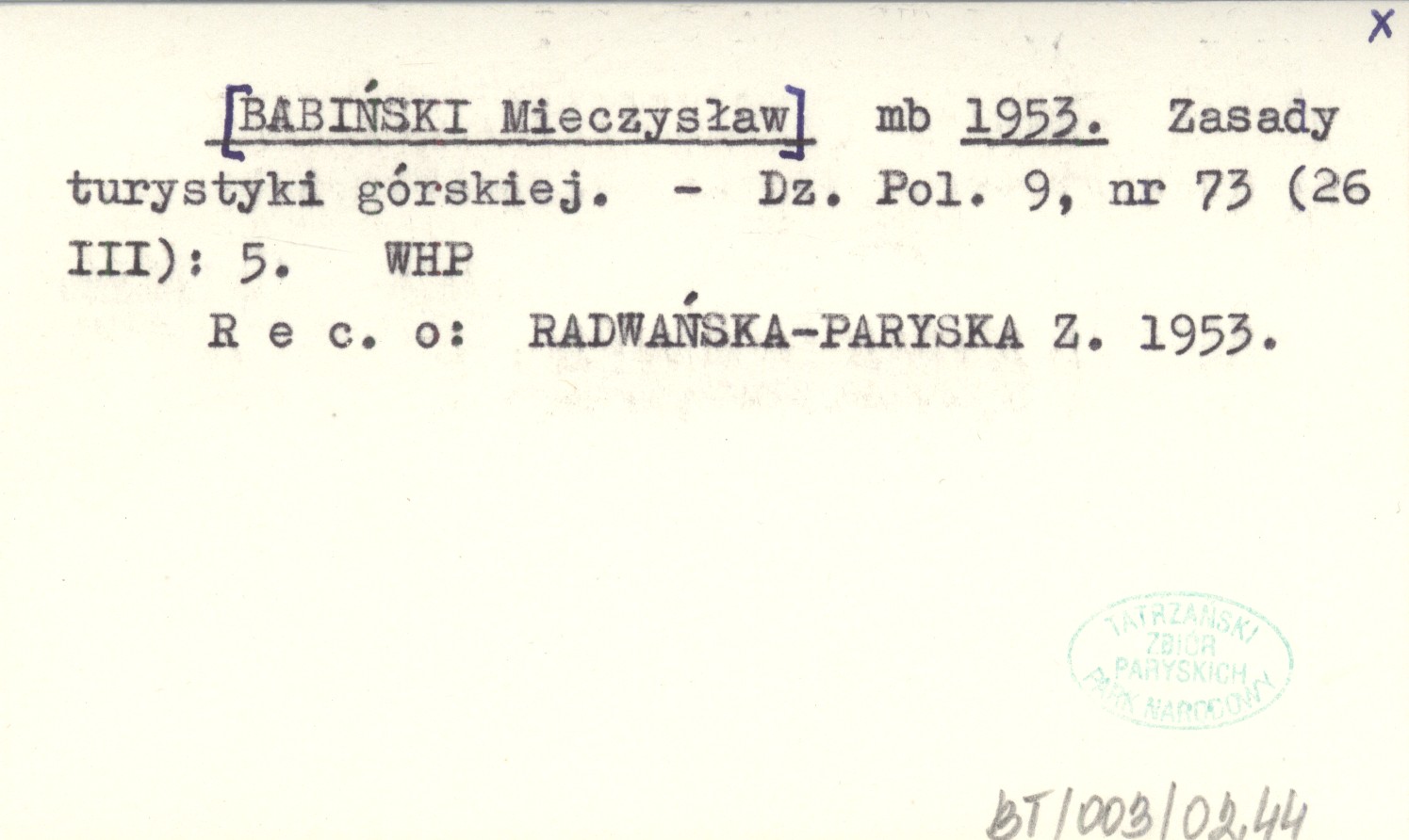 Dziennik Polski, 9, nr 73 (26 III): 5. REC: RADWAŃSKA-PARYSKA Z. 1953