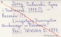 Jerzy Żuławski. Życie i twórczość. 1977 (?)