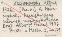JESIONOWSKI Alfred 1936 A. Nowaczyński: Najpiękniejszy człowiek mego pokolenia Brat Albert. Poznań 1936.