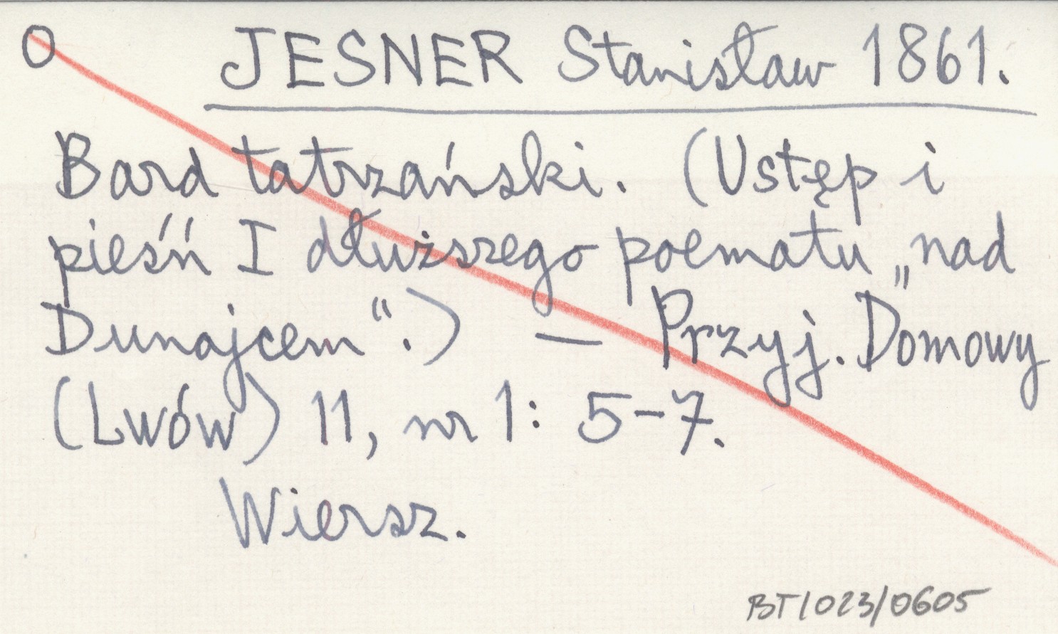 JESNER Stanisław 1861 Bard tatrzański. (Ustęp i pieśń I dłuższego poematu "nad Dunajcem").