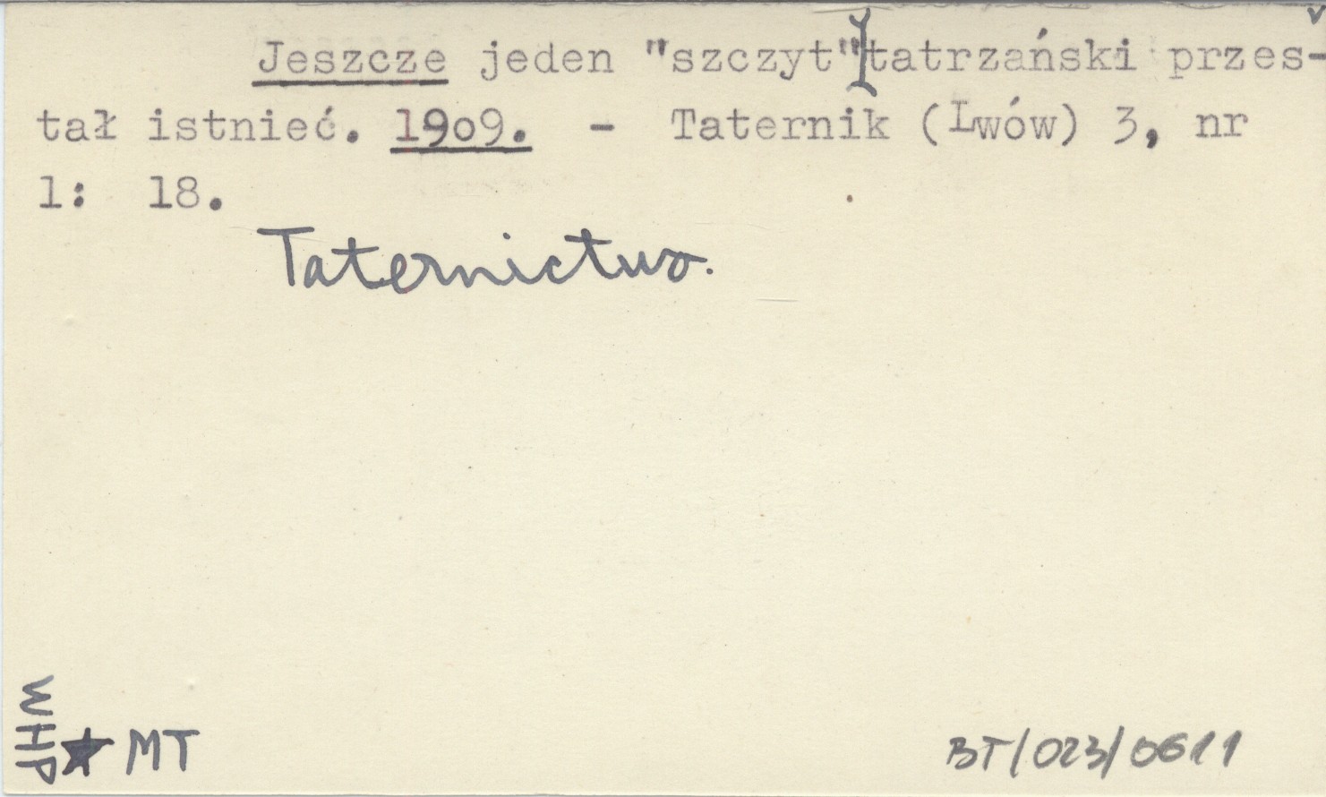 Jeszcze jeden "szczyt" tatrzański przestał istnieć. 1909