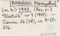 (m. b.) [BABIŃSKI Mieczysław] 1947 "Pokutnik" nr 4 (1947).