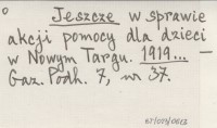 Jeszcze w sprawie akcji pomocy dla dzieci w Nowym Targu. 1919...