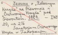 Jeszcze o "Żelaznym Krzyżu" na Giewoncie i "Czerwonym Krzyżu" pod Giewontem. 1929