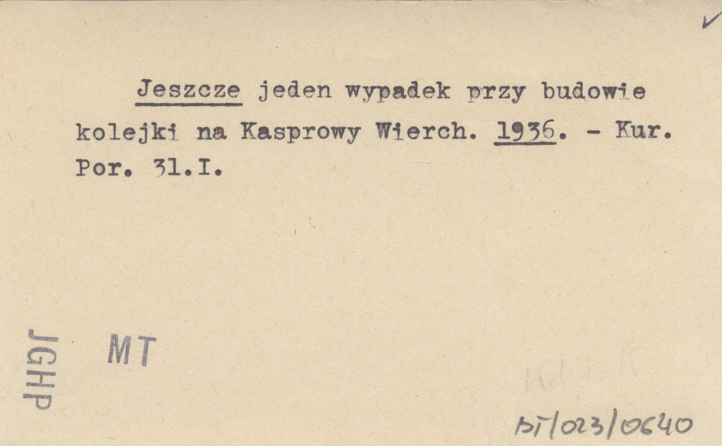 Jeszcze jeden wypadek przy budowie kolejki na Kasprowy Wierch. 1936