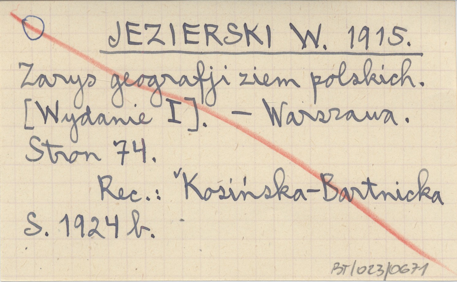 JEZIERSKI W. 1915 Zarys geografji ziem polskich. [Wydanie I].