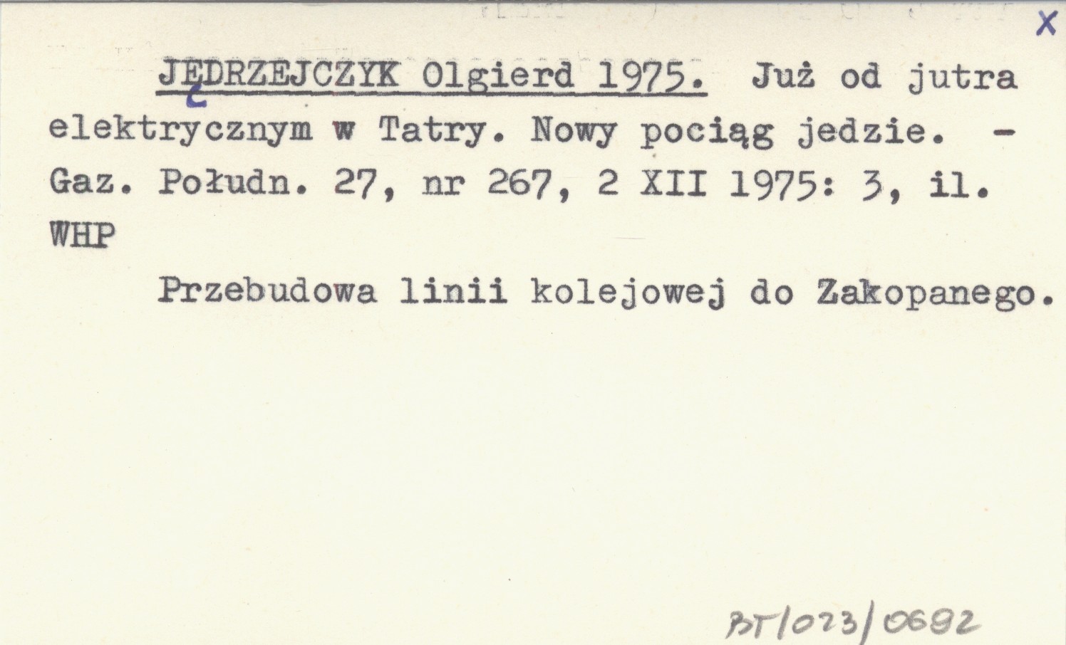 JĘDRZEJCZYK Olgierd 1975 Już od jutra elektrycznym w Tatry. Nowy pociąg jedzie.