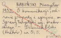 BABIŃSKI Mieczysław 1955 O komunikacji, ochronie przyrody i sprzęcie. Sprawy turystyki woj. krakowskiego.