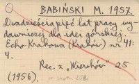 M. B. [BABIŃSKI Mieczysław] 1957 a Nowa tragedia w Tatrach. Dwóch alpinistów Tadeusz Korek i Jacek Bilczewski bagatelizując zasady asekuracji poniosło śmierć na stokach Mięguszowieckiego Szczytu.