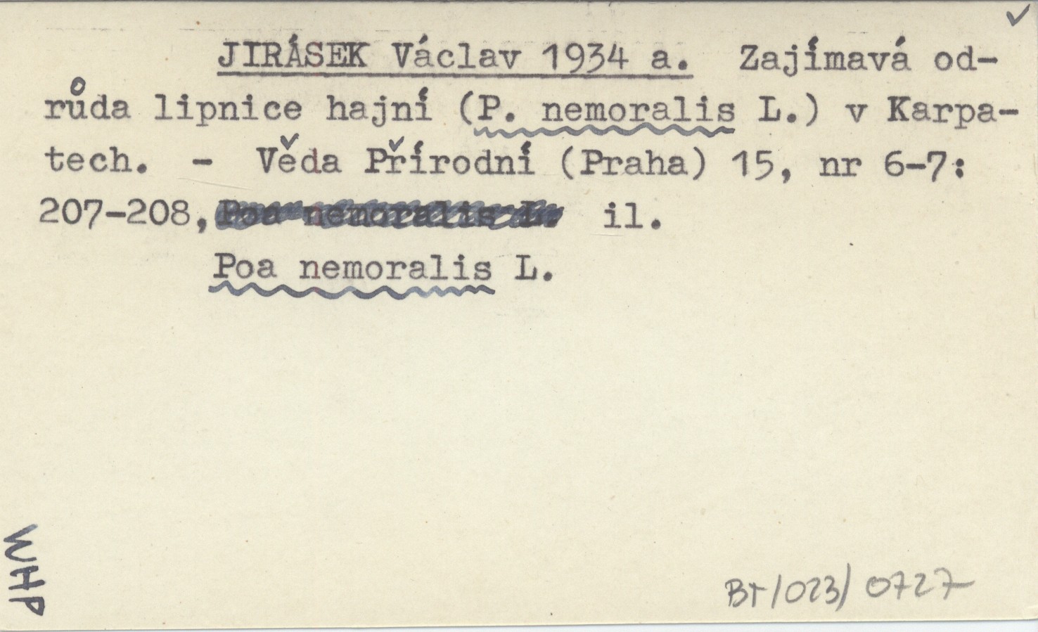 JIRÁSEK Václav 1934 a Zajímavá odrůda lipnice hajní (P. nemoralis L.) v Karpatech.