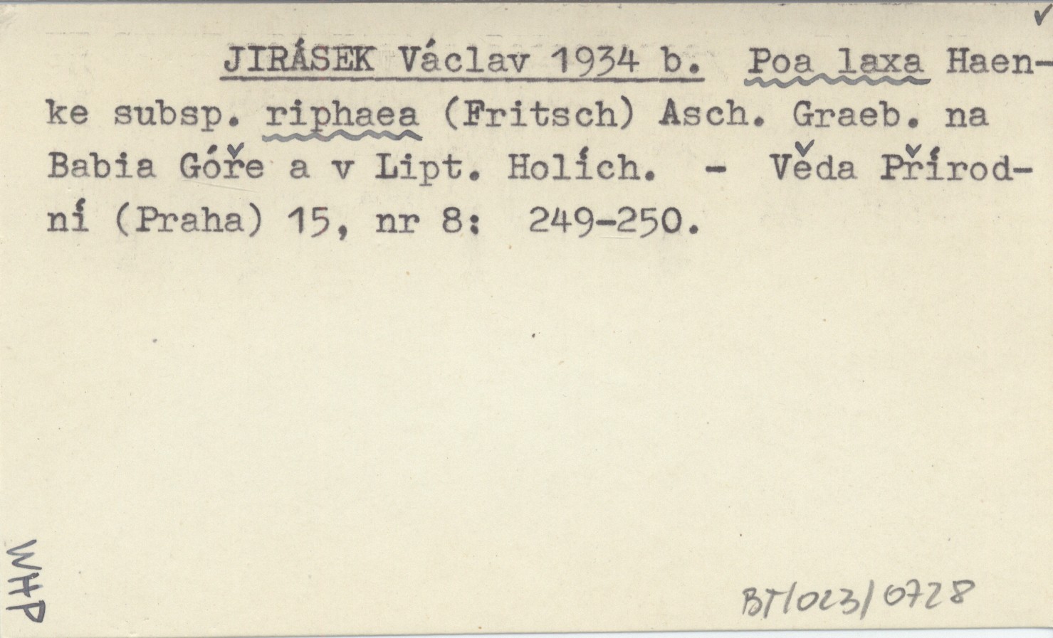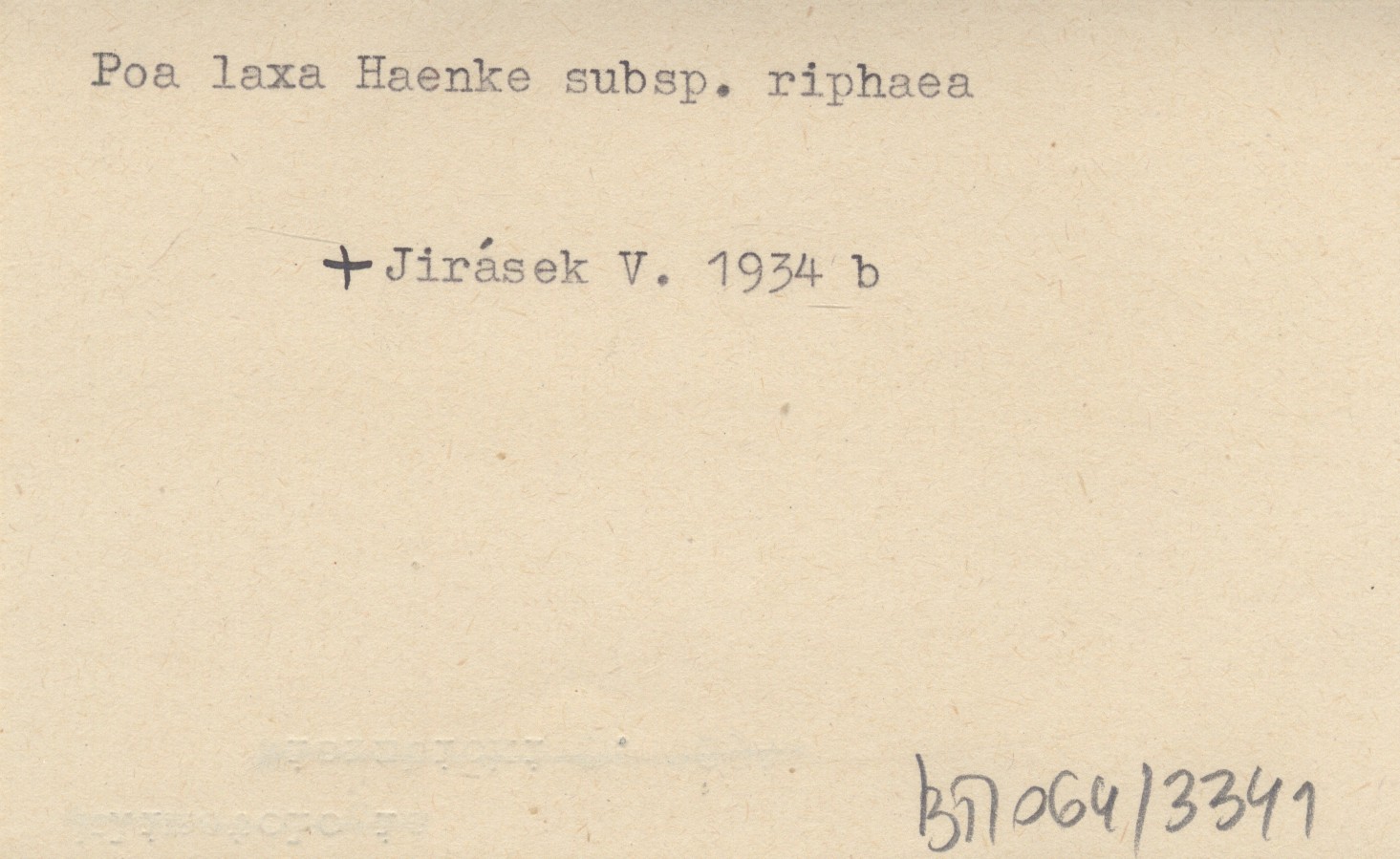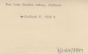 JIRÁSEK Václav 1934 b Poa laxa Haenke subsp. riphaea (Fritsch) Asch. Graeb. na Babia Góře a v Lipt. Holích.