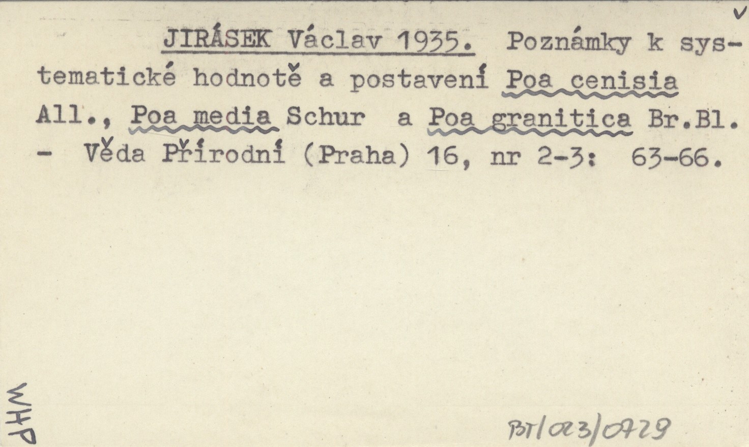 JIRÁSEK Václav 1935 Poznámky k systematické hodnotě a postavení Poa cenisia All., Poa media Schur a Poa granitica Br. Bl.