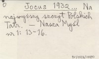 JODKOWSKI Włodzimierz PORĘBSKI, Stanisław. ; 1909 Mnich drugi ścianą północną.
