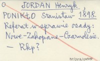 JORDAN Henryk PONIKŁO, Stanisław. ; 1898 Referat w sprawie osady: Nowe-Zakopane-Czarnolesie.