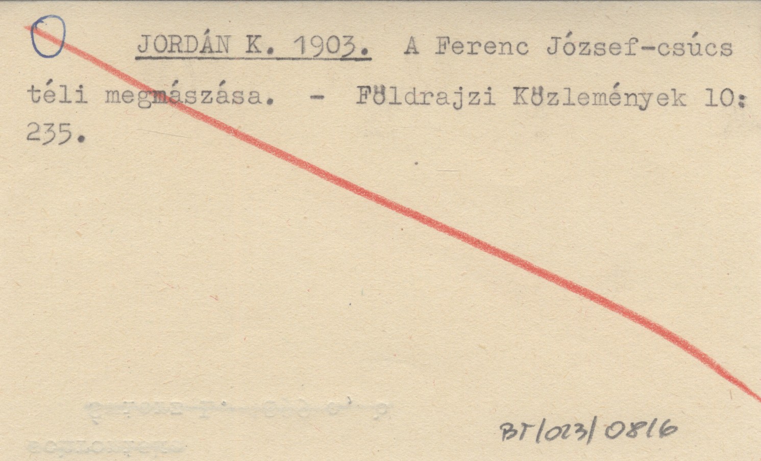 JORDÁN K. 1903 A Ferenc József-csúcs téli megmászása.