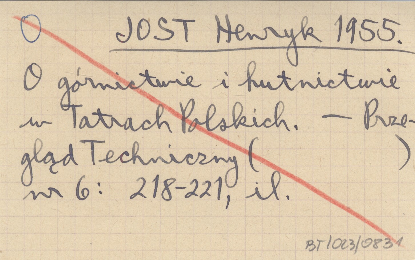JOST Henryk 1955 O górnictwie i hutnictwie w Tatrach Polskich.