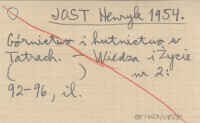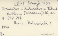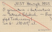 JOST Henryk 1955 O górnictwie i hutnictwie w Tatrach Polskich.