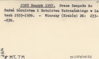 JOST Henryk 1957 Prace Zespołu do Badań Górnictwa i Hutnictwa Tatrzańskiego w latach 1955-1956.