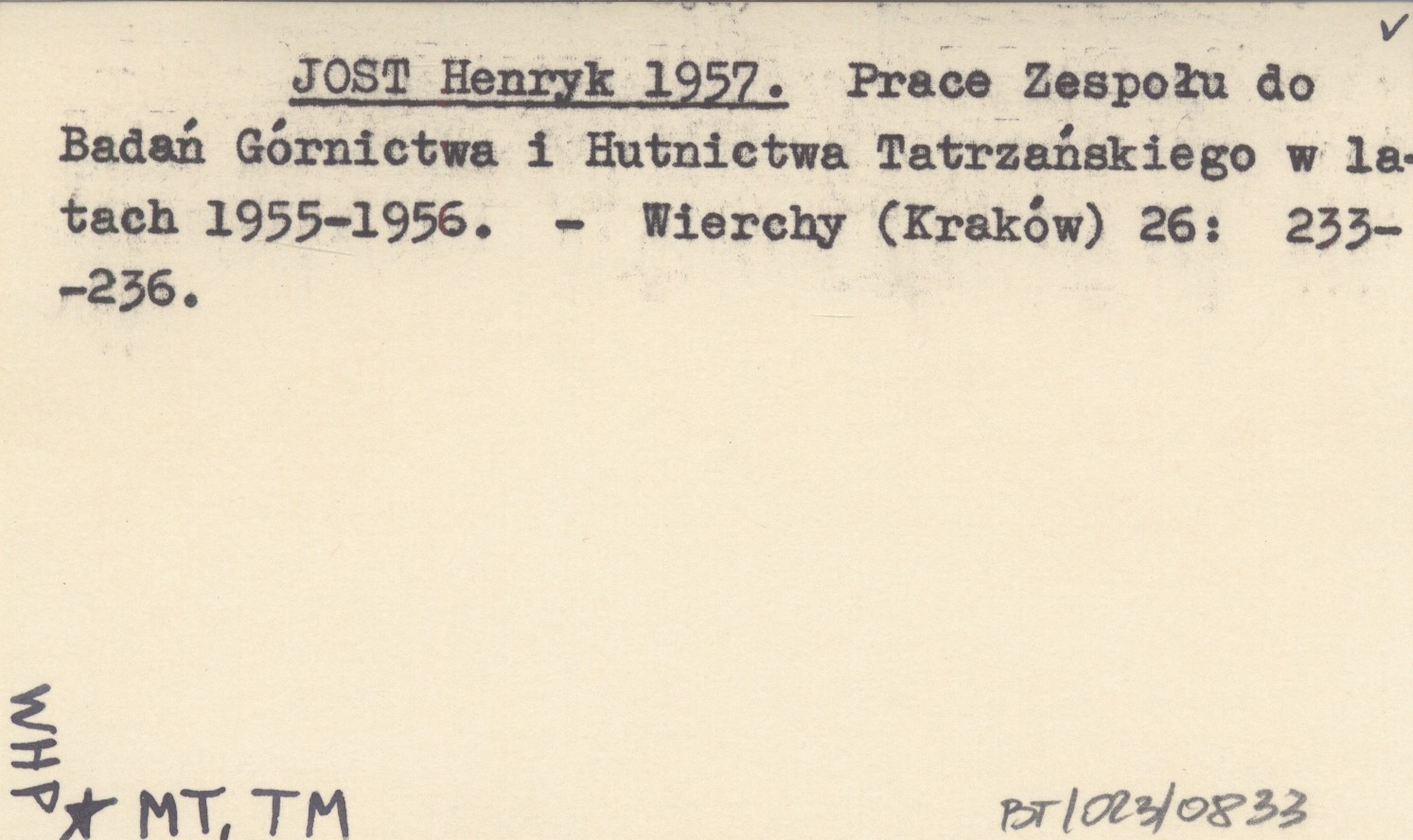JOST Henryk 1957 Prace Zespołu do Badań Górnictwa i Hutnictwa Tatrzańskiego w latach 1955-1956.